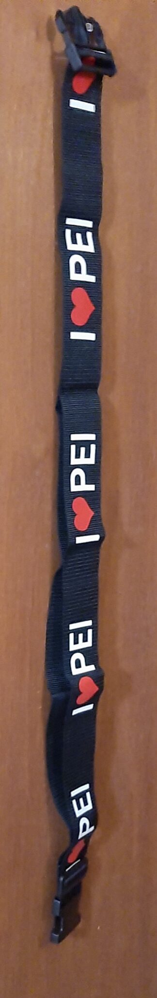 A very durable luggage strap. Perfect for securing your bags while showcasing your love for Prince Edward Island.